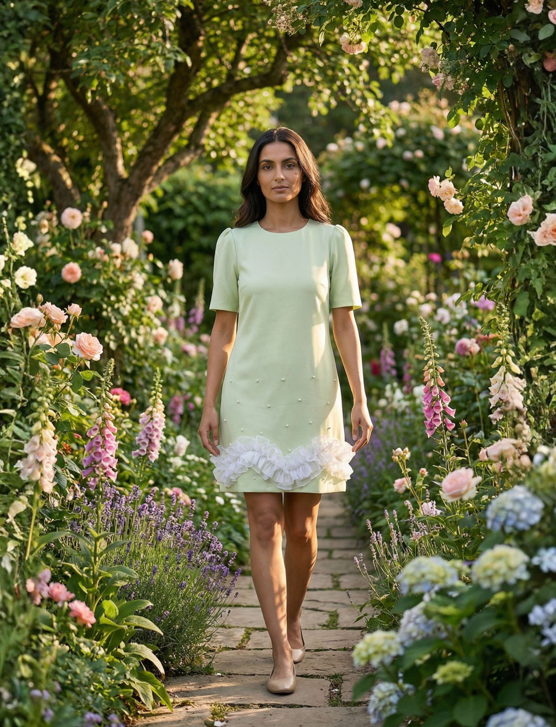 This refreshing pastel green dress features a clean, straight silhouette that offers effortless elegance and...