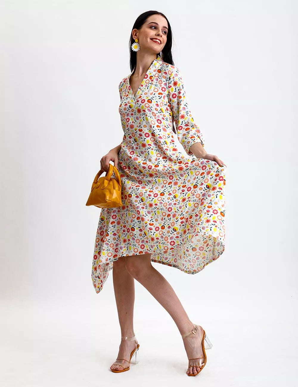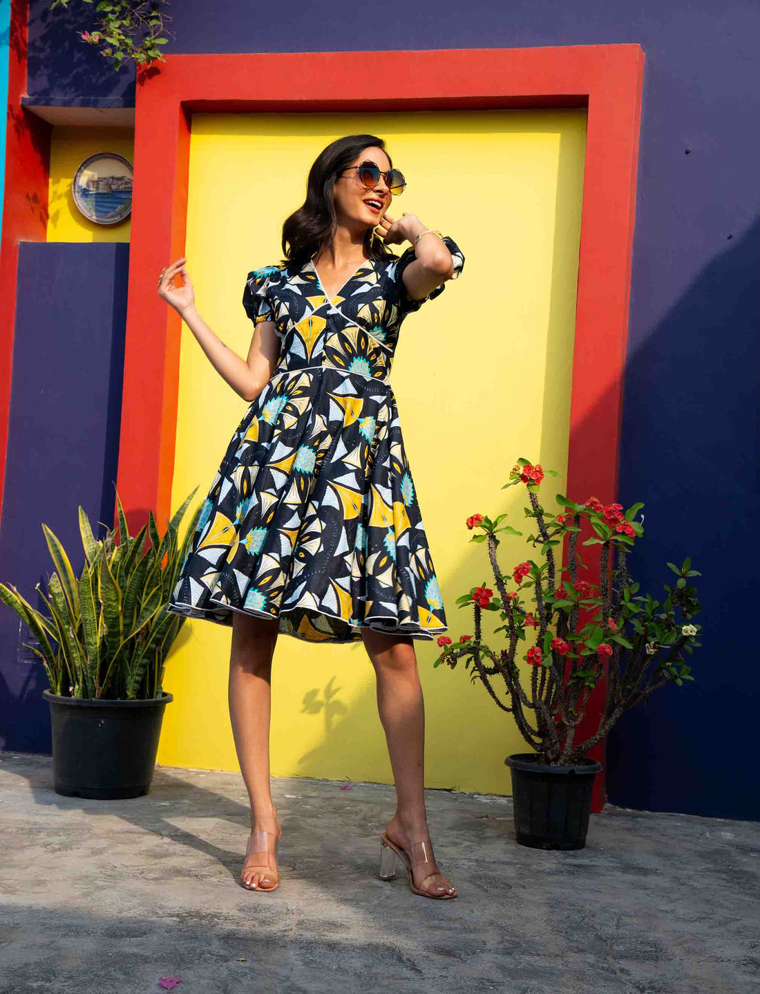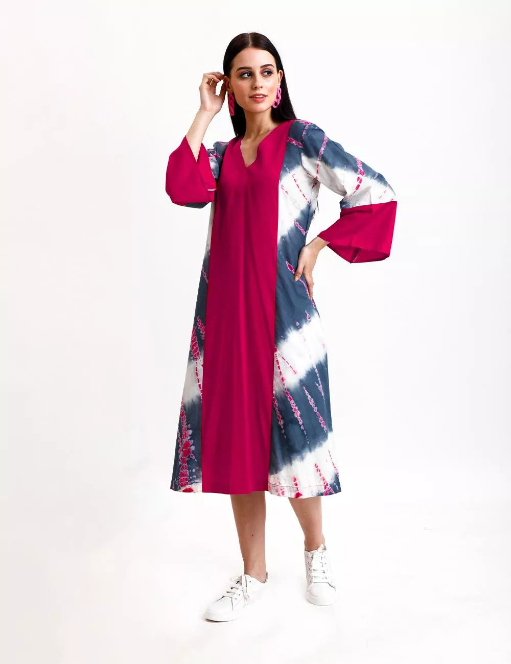 Product DetailsType: A-Line dressFit: Slim FitNeckline type: V NeckSleeves styling: Bell sleevesPattern: ShiboriFabric: Cotton and...