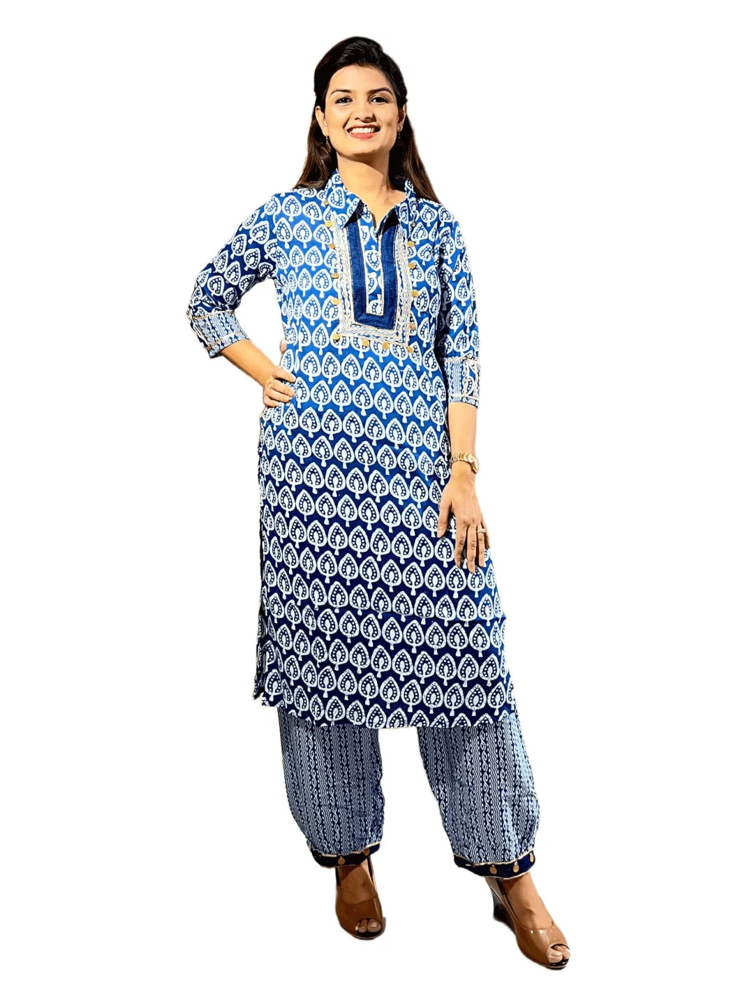 Product DetailsType: Kaftan Co-Ord SetFit: ComfortableNeckline type: CollarSleeves styling: 3/4th Cuff SleevePattern: FloralFabric: CottonColor: Powder...