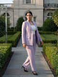 A Bold And Elegant Blazer Set , Designed To Make A Statement. The Blazer Features A Structured Silhouette With Sharp Shoulders, A Deep Classic Peak Lapel Collar , And A Single Golden Statement Botton Closure That Adds Luxe Refinement. Paired With Sleek Flare Pants For A Polished , Elongated Look. Prefectly Tailored To Enhance Modern Femininity With A Touch Of Sophistication, This Ensemble Blends Confidenc, Class, And Contemporary Style Effortlessly