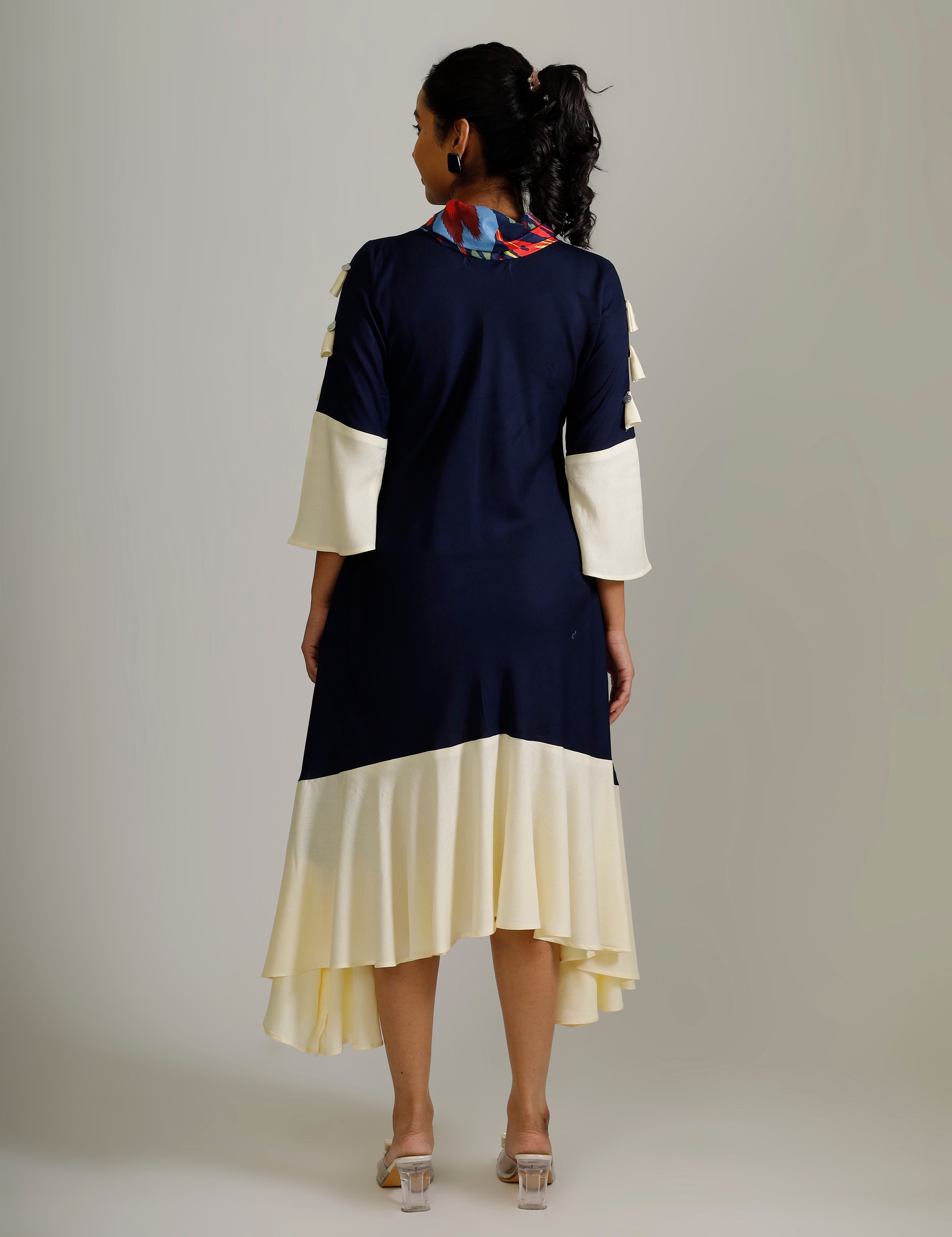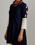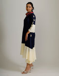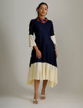 Cowl Neck Dress - Blue and Cream