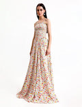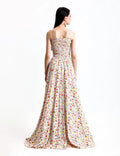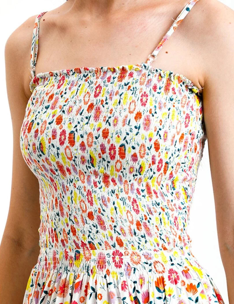 Floral Printed Maxi Flare Dress Has Spaghetti Adjustable Straps, Square Neckline, Smoking Yoke, Flared Hem.