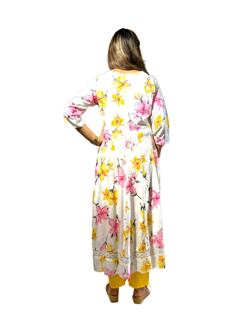 Off White Floral Print A Line Kurta Set with Pant