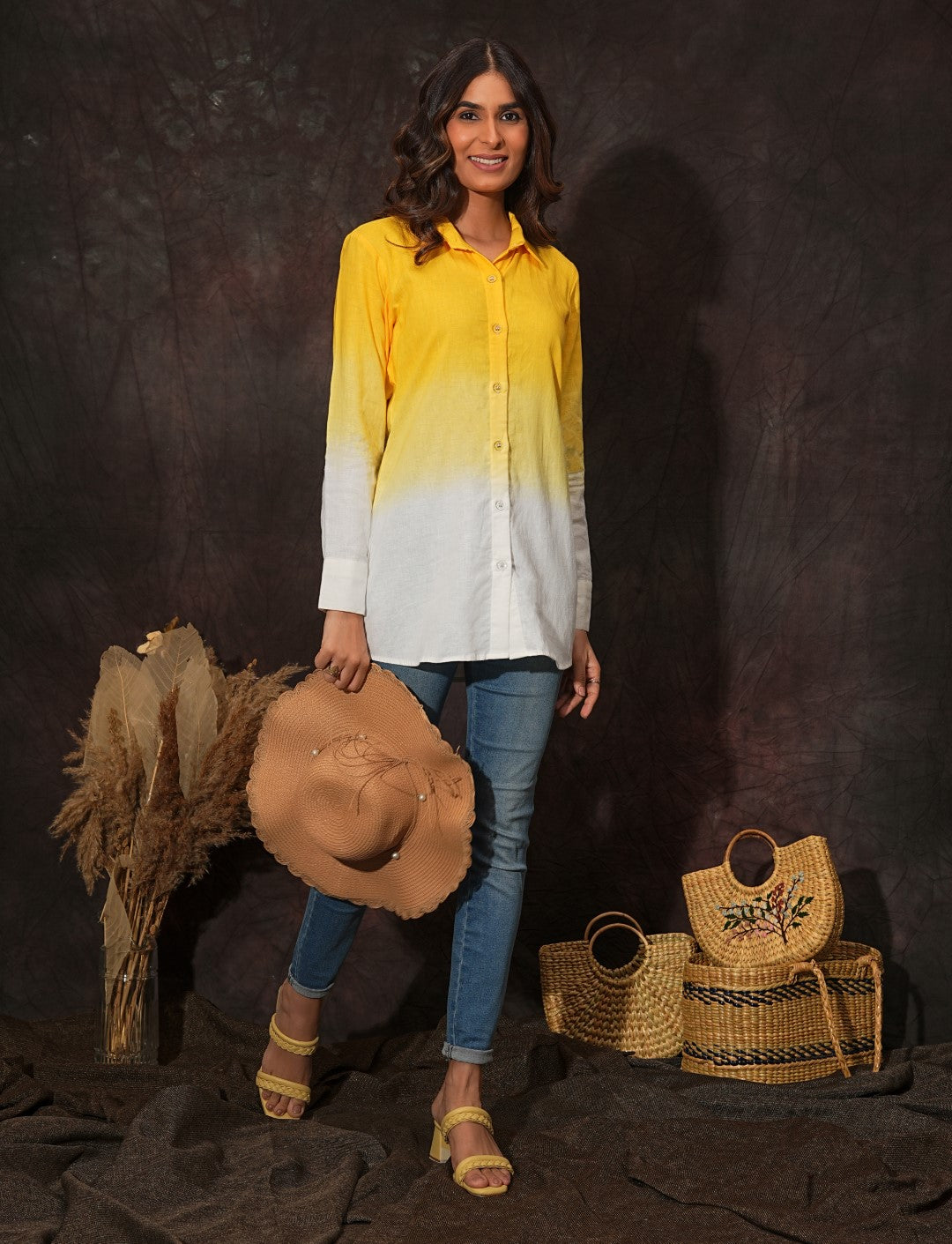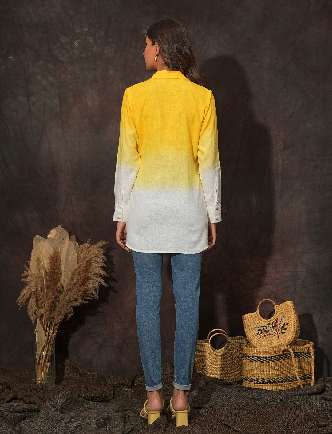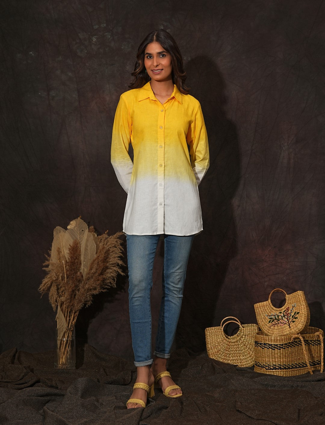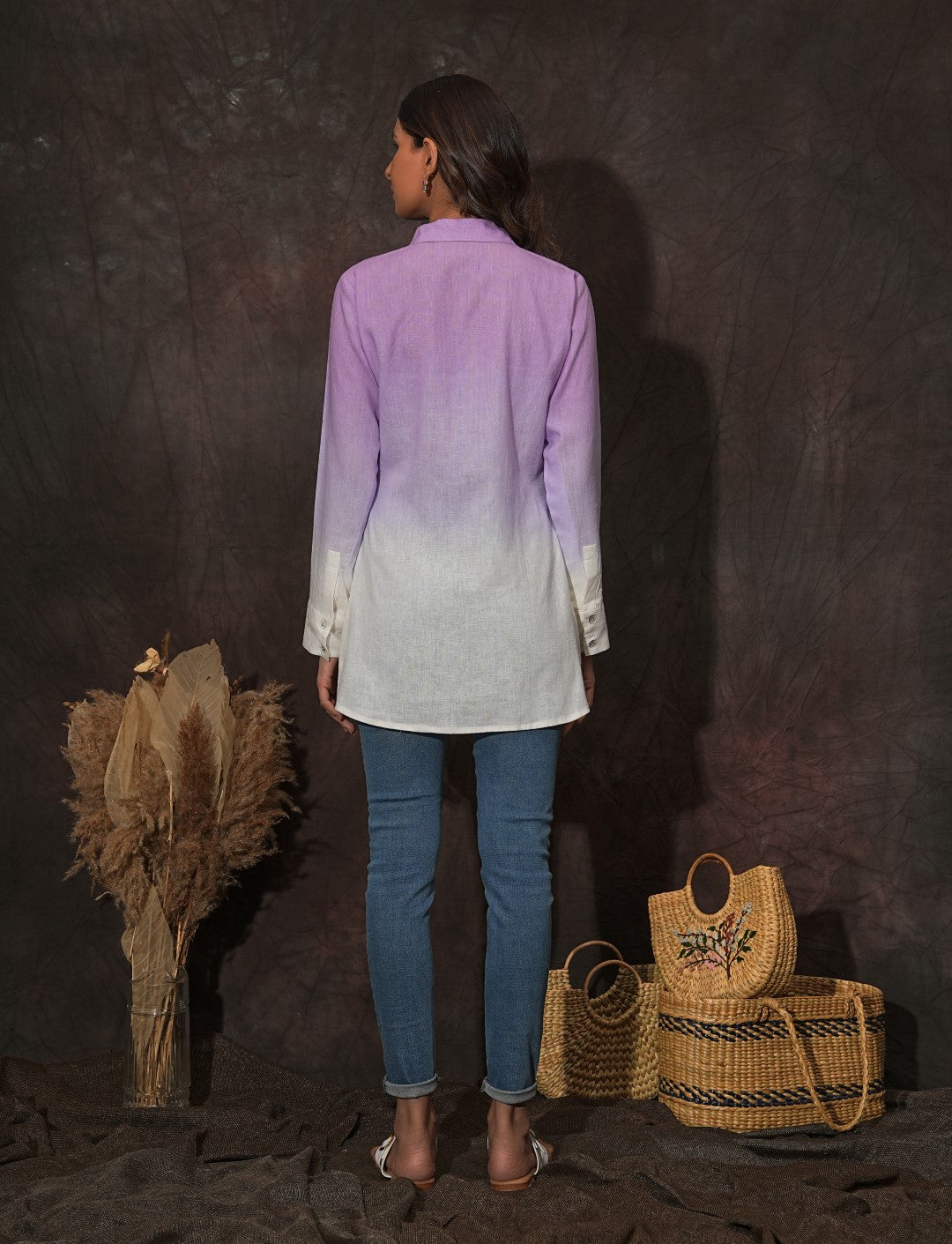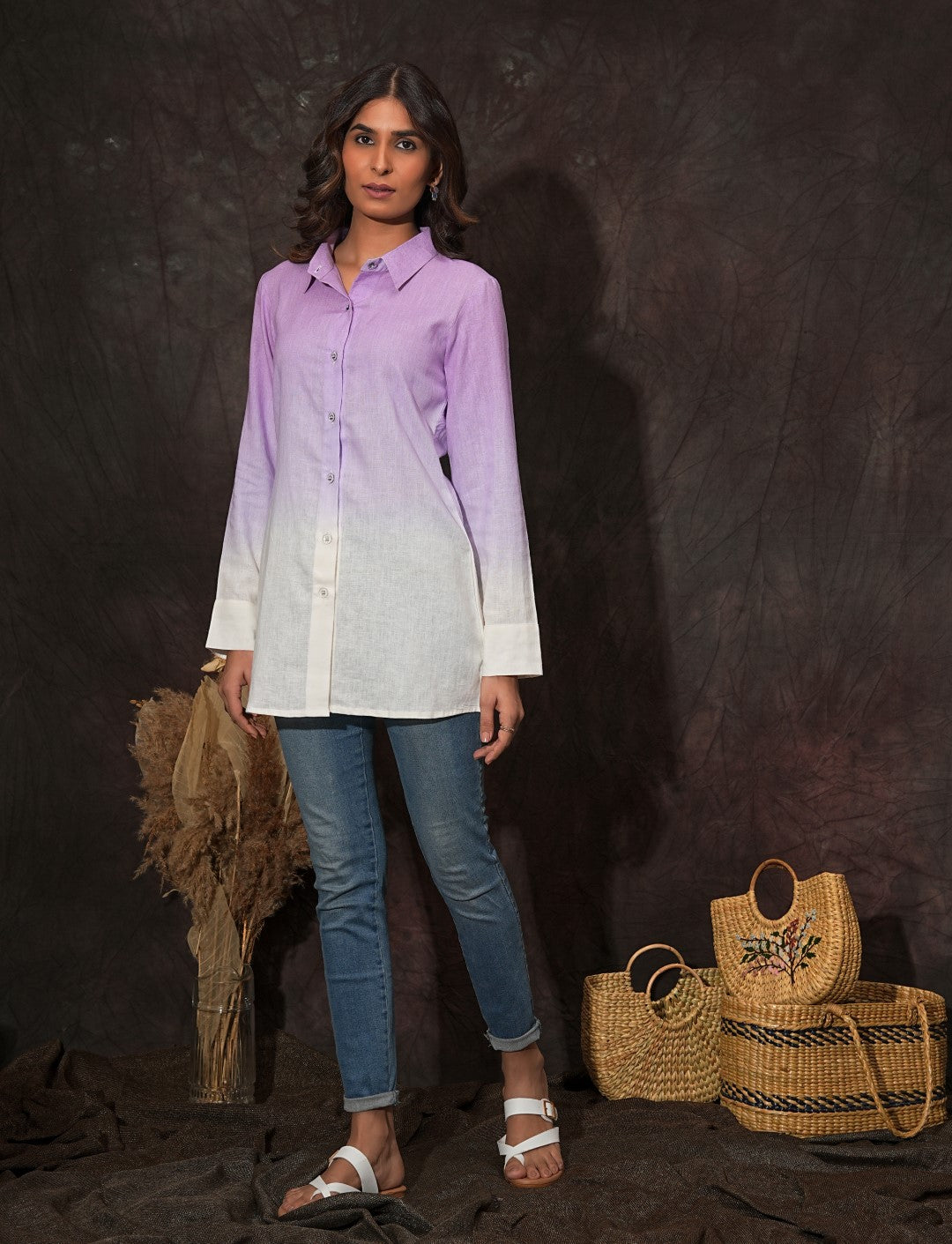 Description: A classic button-down shirt that will never go out of style. Breathtaking ombre dyed, and crafted from fine linen fabric, this exquisite button-down shirt features a shirt collar and regular sleeves with cuffs.