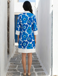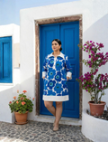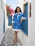 This effortlessly styling knee length dress is designed to make everyday dressing feel elevated and easy. Crafted in a striking blue floral print, this dress brings a fresh , contemporary charm with a hint of retro appeal. The shirt collar neckline with a short button placket , adding a structure touch to thr relaxed silhouette. The 3/4th sleeves are finished with crisp white contrst cuffs, again at the hemline for clean , polished look . The straight easy fit makes it perfect for daytime wear, travel, or casual outings.